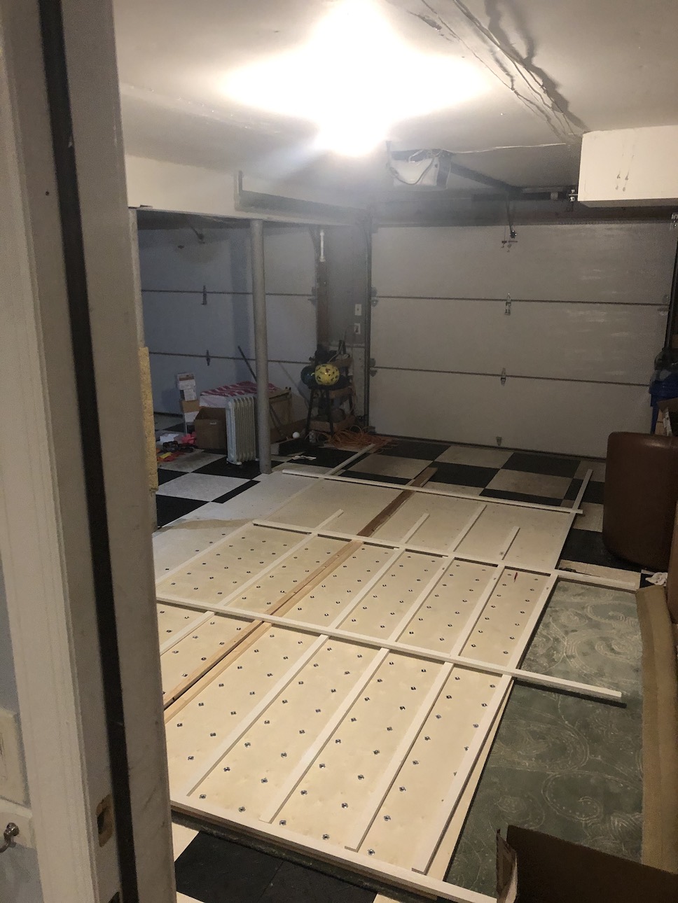 – floor was 1/4″ lower at one end