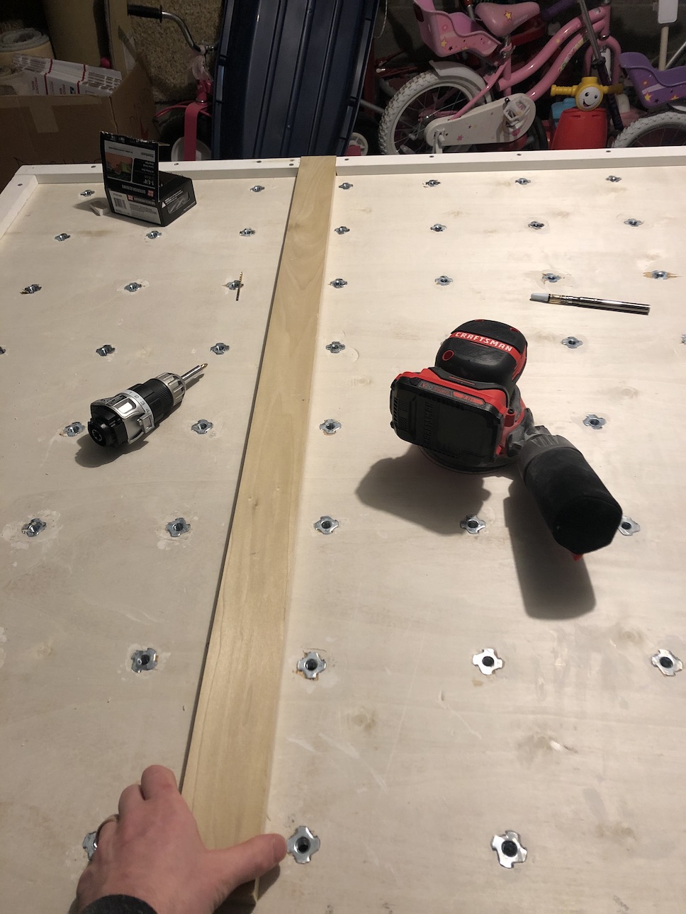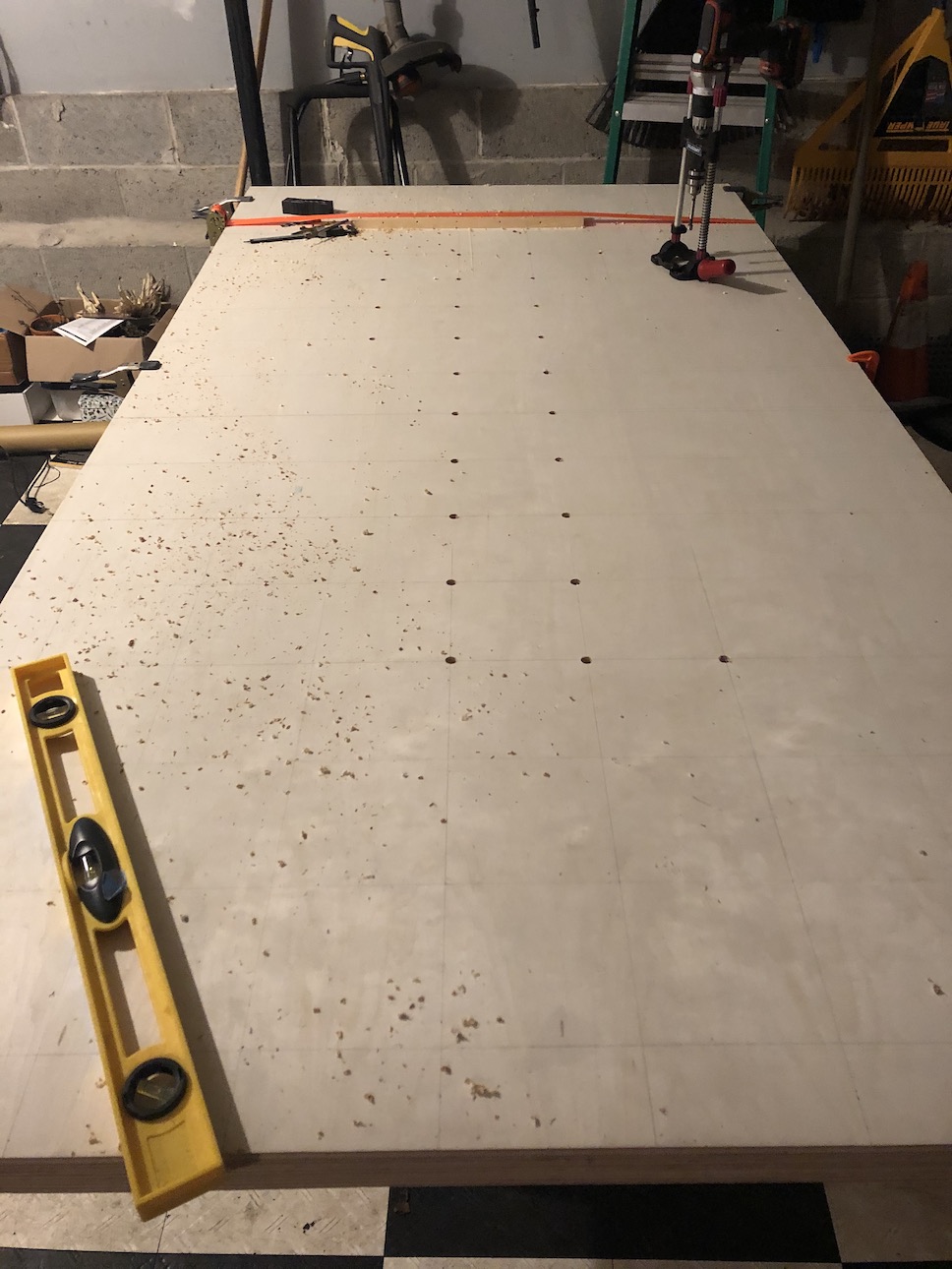 - I stacked 3 plywood boards and drilled them together. Saved tons of time.